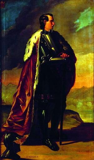 Keywords: Alifonso V d'Aragón.jpg Retrato imaginario del rey Alfonso V de Aragón 1396-1458 que fue hijo del rey Fernando I de Aragón y de la reina Leonor de Alburquerque Ca 1851-1854 oil on canvas Size cm 124 212 Institution Diputación Provincial de Zaragoza Expuesto en el Institution Palacio de los condes de Sástago Zaragoza http //web dpz es/arscatalogi es/ object history exhibition history credit line accession number 2039 http //web dpz es/arscatalogi es/ PD-old-100 Portrait paintings of Alphonse V of Aragon Portraits of kings of Aragón by Manuel Aguirre Diputación Provincial de Zaragoza Ermine clothing in art |