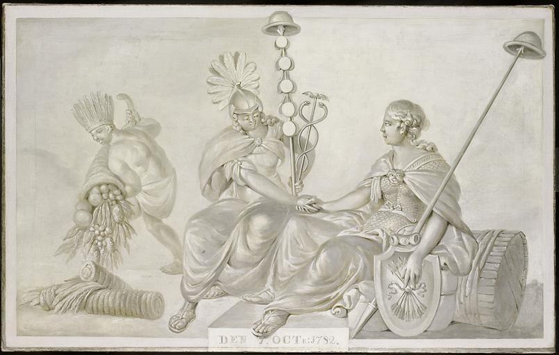 Keywords: Allegorie op het 'Tractaat van Vriendschap en Commercie tusschen hun Hoog Mogenden de Staaten Generaal der Vereenigde Nederlanden en de Vereenigde Staaten van America', 1782 Rijksmuseum SK-A-4876.jpeg accession number SK-A-4876 Anonymous credit line nl Allegorie op het 'Tractaat van Vriendschap en Commercie tusschen hun Hoog Mogenden de Staaten Generaal der Vereenigde Nederlanden en de Vereenigde Staaten van America' 1782 Drie figuren voorstellende rechts de Nederlandse maagd zittend op een ton met de vrijheidshoed op een lans en links de Amerikaanse maagd met Indiaanse trekken en een helm met veren in de hand een lans met medaillons en een helm en de cadeucus De maagden schudden elkaar de hand Op de achtergrond een Indiaan met ontbloot bovenlijf die een hoorn des overvloeds leegstort op de grond Hieruit gevallen liggen op de grond rollen Virginiatabak Afkomstig uit een huis aan de Nieuwe Haven 32a te Dordrecht Height cm 101 5 Width cm 160 5 exhibition history Institution Rijksmuseum Technique oil canvas object history Acquisition 1989-11-28 object type painting Potential derivatives exist check http //commons wikimedia org/w/index php search Rijksmuseum+SK-A-4876 this search PD-US PD-old Data and photography rights All data and all images made available through the API are either in the public domain or are subject to a CC0 license https //www rijksmuseum nl/en/api/terms-and-conditions-of-use cc-zero place of creation Nederland Lydia Beerkens 'De schijn bedriegt restauratie brengt nieuwe gegevens aan het licht over een grisaille-schilderij uit Dordrecht' Care 1 1997 nr 1 p 33-40 Documentatiemap Schilderijen http //www rijksmuseum nl/collectie/SK-A-4876 Allegorie op het 'Tractaat van Vriendschap en Commercie tusschen hun Hoog Mogenden de Staaten Generaal der Vereenigde Nederlanden en de Vereenigde Staaten van America' 1782 Q17341240 Uploaded with GWToolset Allegorie op het 'Tractaat van Vriendschap en Commercie tusschen hun Hoog Mogenden de Staaten Generaal der Vereenigde Nederlanden en de Vereenigde Staaten van America' 1782 Rijksmuseum SK-A-4876 http //www rijksmuseum nl/media/assets/SK-A-4876 Images uploaded by Fæ Images from the Rijksmuseum Dutch 18th-century paintings in the Rijksmuseum Amsterdam |