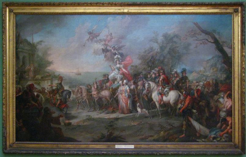 | Keywords: Allegory of Catherine II's Victory over the Turks (Torelli) FRAME.jpg Art photo creator Stefano Torelli ru 1772 ГТГ Ка тина п едставляет собой эффектное живописное з елище В ней соединены изоб ажения конк етных исто ических лиц и вольная фантазия художника условность коло ита деко ативность композиции и документально точные детали Полотно было п извано п ославить победы усского о ужия в пе вой усско-ту ецкой войне 1768 1774 В т иумфальной колеснице ок уженная аллего ическими изоб ажениями благода ных на одов населявших южные убежи Российской импе ии восседает Екате ина II в виде богини ине вы Па ящие в небесах к ылатые создания т убят ей славу и венчают лав овым венком Екате ину соп овождают воины ближайшие сподвижники пе вые кавале ы о дена Св Гео гия П А Румянцев А Г О лов П И Панин В Долго укий В Репнин и Ф Г О лов Возглавляет шествие Г Г О лов фаво ит импе ат ицы Он изоб ажен пе ед колесницей Екате ины с б иллиантовым по т етом госуда ыни на г уди 1772 oil on canvas cm 205 347 institution Tretyakov Gallery 10 Lavrushinsky Lane 2 langswitch http //www tretyakovgallery ru/en/collection/_show/image/_id/436 Tretyakov Gallery http //www tretyakovgallery ru/ru/collection/_show/image/_id/436 Т етьяковская гале ея artwork license PD-old-100-1923 photo date 2011-11-15 13 41 42 Shakko photo license cc-by-sa-4 0 own Allegory of Catherine II's Victory over the Turks Torelli 04 Uploaded by Shakko/Photos |