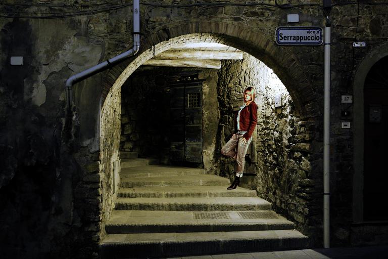 | Keywords: alley lonely dark leave sad loneliness alone woman lost person silent gloomy being alone emotion human abandonment wait tunnel stairs lantern light old town passage historically street lamp street lighting night scene lean on stone wall archway defiant strong courageous |