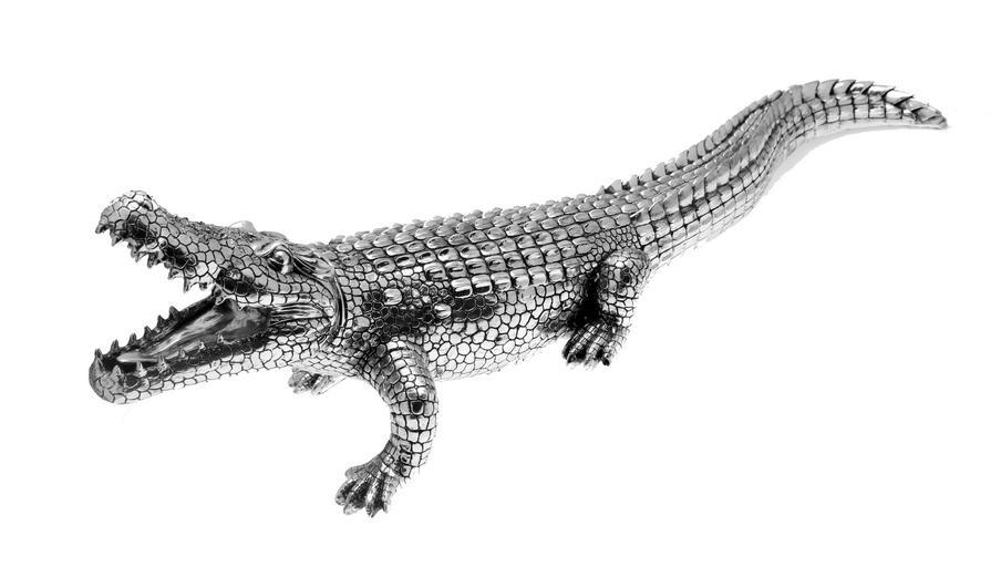 Keywords: alligator crocodile silver chrome metal model statue figurine lizard reptile polished steel platinum