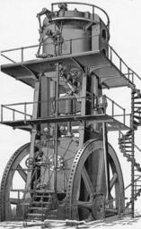 Keywords: Allis blowing engine (New Catechism of the Steam Engine, 1904).jpg A blowing engine of very large size built by the E P Allis Co of Milwaukee The steam cylinder is 42 diameter the air cylinder 84 and the stroke 60 Valve gear is of the Reynolds-Corliss type Blowing engines Steam engines with Corliss valvegear |