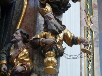 Keywords: Allmannshofen Kloster holzen 0019.JPG Kloster Holzen ist ein ehemaliges Kloster der Benediktinerinnen in Allmannshofen in Bayern in der Diözese Augsburg Decorations on the Altar of Madonna and Child Holzen Abbey is a Benedictine abbey near the village of Allmannshofen in Bavaria Germany Own Mattana 2009-04-08 Images by Mattana-Allmannshofen Germany Baroque statues of Christian saints in Swabia administrative region Klosterkirche St Johannes der Täufer Holzen |
