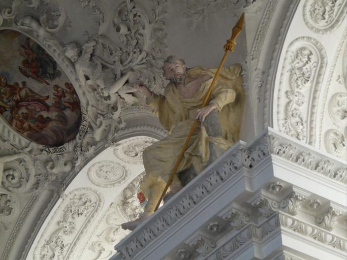 Keywords: Allmannshofen Kloster holzen 0040.JPG Kloster Holzen ist ein ehemaliges Kloster der Benediktinerinnen in Allmannshofen in Bayern in der Diözese Augsburg <br> Holzen Abbey is a Benedictine abbey near the village of Allmannshofen approximately 15 kilometers south of Donauwörth in Bavaria Germany Own Mattana 2009-04-08 Images by Mattana-Allmannshofen Germany Klosterkirche St Johannes der Täufer Holzen Baroque statues of Christian saints in Swabia administrative region Statues of Saint Thomas in Bavaria |