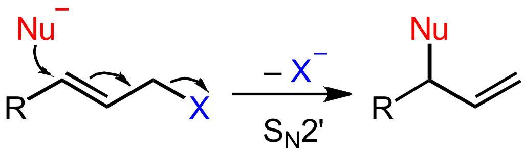 Keywords: Allylic SN2 rearrangement.svg C - en Allylic rearrangement - SN2' reaction ja アリル転位 SN2' 機構 self work with ChemDraw Su-no-G 2010-03-14 Reaction mechanisms SN2 reactions