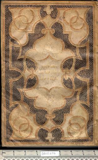 | Keywords: Almagetum - Lower cover (Davis406).jpg Style Interlacing ribbon/strapwork Mottoes; Caption Lower cover; Colour White / cream; Edge Gilt and gauffered exhibition history Decorative Technique Painted Tooled in gold; Cover Material Parchment p1337 Thin paste paper boards Pink headbands with a single bead See G D Hobson French and Italian Collectors p 33;Nixon Sixteenth century gold tooled bookbindings in the Pierpont Morgan Library; For other French 16c bindings see Marie-Pierre Laffitte Fabienne Le Bars Reliures royales de la Renaissance Paris 1999 object history Text 1528; Venice; Mahieu Thomas object type Cc-zero place of creation Binding France place of discovery Unspecified British Library image http //www bl uk/catalogues/bookbindings/LargeImage aspx RecordId 020-000008036 ImageId ImageId 43623 Copyright BL Almagetum Uploaded with GWToolset Almagetum - Lower cover Davis406 http //www webarchive org uk/bldatasets/bindings/8636_4 jpg Bookbinding 16th-century bookbinding British Library Bookbindings |