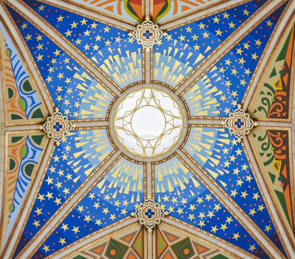 Keywords: almudena cathedral ceiling painting church madrid neoclassicism colorful spain color facade architecture building blanket icon painter kiko argüello