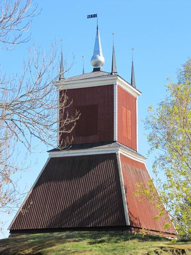Keywords: almunge church sweden wooden bell tower building exterior graveyard religious