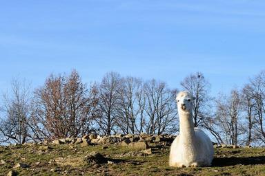 Keywords: alpaca white furry head zoo animals animal nature wildlife park animal portrait
