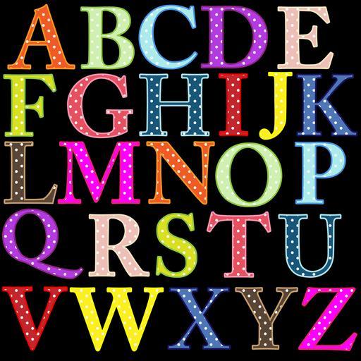 Keywords: alphabet letters alphabet letters a-z colorful bright polka dots dots spots illustration clip-art scrapbooking