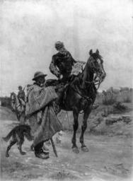 Keywords: Alphonse de Neuville - Information - Walters 3793.jpg A mounted officer of the Engineers with map in hand is seeking directions from a peasant tending his flock with a dog Another mounted soldier is visible in the background A pen and ink drawing of this subject now in a private collection in Boulogne-sur-Mer dated 1876 was published by Deneuville in Croquis Militaires Paris 1876 plate 16 This drawing may be the Paysan donnant des renseignements à des officiers français listed in the Deneuville Sale Paris 1886 no 256 1876 Oil on canvas cm 46 6 33 accession number 37 93 11568 William T Walters Baltimore prior to 1878 mode of acquisition unknown Henry Walters city Baltimore Walters Art Museum Henry Walters Acquired by William T Walters before 1878 A de Neuville/ 1876 signature/date ~ place of origin France Walters Art Museum license 2D 1876 paintings French army 1870-1914 19th-century paintings of soldiers Alphonse-Marie-Adolphe de Neuville French paintings in the United States Males with horses in art French paintings in the Walters Art Museum People with maps in art 1870s paintings from France |