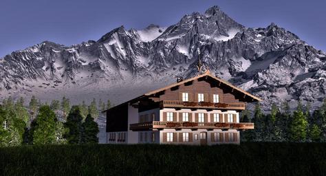 Keywords: alpine mountains mountains house idyll holiday home digital art