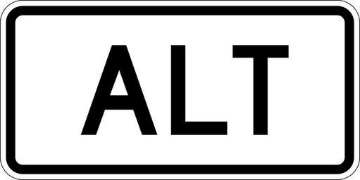 | Keywords: Alt plate.svg 600 mm by 300 mm 24 in by 12 in alt plate made to the specifications of the http //mutcd fhwa dot gov/SHSm/Guide pdf 2004 edition of Standard Highway Signs sign M4-1a Uses the http //www triskele com/fonts/index html Roadgeek 2005 fonts United States law does not permit the copyrighting of typeface designs and the fonts are meant to be copies of a U S Government-produced work anyway The outside border has a width of 1 1 mm and a color of black so it shows up; in reality signs have no outside border own Ltljltlj User Ltljltlj/Template derivative works US 50 Alt svg US 95 Alt svg M4-1 - Alternate Auxiliary Diagrams of black and white road signs |