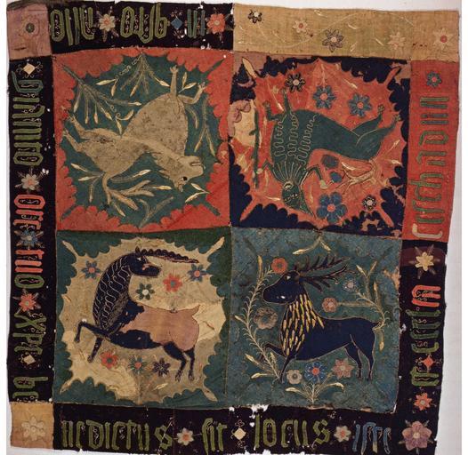 Keywords: Altartuch mit Fabelwesen.jpg de Altartuch mit Fabelwesen Skandinavien 135x130 cm Wolle Intarsientechnik Applikation Rijkmuseum Amsterdam Dauerleihgabe aus Privatbesitz o Nr Tuchintarsien in Europa von 1500 bis heute Inlaid Patchwork in Europe from 1500 to the Present Katalog zur Ausstellung im Museum Europäischer Kulturen Berlin 2009 S 294 ISBN 9783795422172 author circa 1400 1600 PD-Art Inlaid Patchwork |