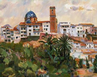 Keywords: spain altea basilica citadel town alicante provincia oilpainting hubertine-heijermans hubertineheijermans artist.painter artistpainter outdoor costa.blanca costablanca españa 1997 on.canvas oncanvas Altea 3. It is hard to define whether Altea is a town or a large village, because it is a small agglomeration of houses, but stands out because of it's beautiful and large 'Basilica'. The painting now belongs to a private Art collector. En français: c'est difficile de déterminer si Altea représente un grand village ou une petite ville, car le nombre de maisons et d'autres habitations est limité mais la présence de la grande Basilique en fait une petite ville. La peinture se trouve actuellement dans une collection privée. Altea 3. It is hard to define whether Altea is a town or a large village, because it is a small agglomeration of houses, but stands out because of it's beautiful and large 'Basilica'. The painting now belongs to a private Art collector. En français: c'est difficile de déterminer si Altea représente un grand village ou une petite ville, car le nombre de maisons et d'autres habitations est limité mais la présence de la grande Basilique en fait une petite ville. La peinture se trouve actuellement dans une collection privée. |