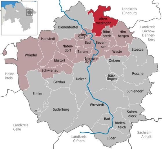 | Keywords: Altenmedingen in UE.svg DeLocMaps Altenmedingen Landkreis Uelzen District of Uelzen Uelzen district L'arrondissement d'Uelzen Arrondissement d'Uelzen Niedersachsen Lower Saxony Basse-Saxe TUBS/Translation Adobe Illustrator <br/> based on <br/> File Lower Saxony location map svg NordNordWest<br/> http //www geodaten niedersachsen de/master/C17415881_N17416128_L20_D0_I15258844 htm Niedersachsen Viewer<br/> http //www geomdk niedersachsen de/data/lgn/info/dgm5_lk360 pdf Koordinierungsstelle GDI-NI beim Landesbetrieb Landesvermessung und Geobasisinformation Niedersachsen DGM 5 Verfügbarkeit Landkreis/Stadt Landkreis Uelzen<br/> File Locator map UE in Lower Saxony svg TUBS 2010-10-05 Hagar66 based on work of TUBS Hagar66/licensesection Attribution TUBS/Credits Locator maps of municipalities in Landkreis Uelzen Altenmedingen |