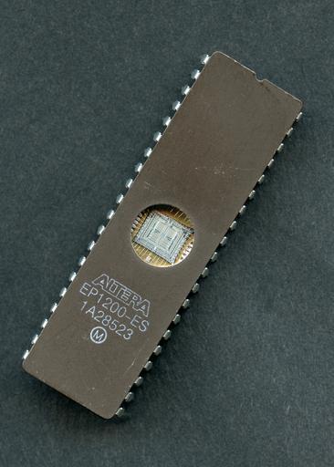 | Keywords: Altera EP1200 CPLD.jpg Altera EP1200 programmable logic device was introduced in 1985 The device used UV erasable technology and could hold the equivalent of 1200 logic gates It came in a 40 pin 600 mil DIP package Intel was a second source Image made by placing the IC on an Epson Perfection V500 Photo scanner Own Swtpc6800 en User Swtpc6800 Michael Holley 2012-06-02 File Altera EP1200 Close Up jpg Altera Close-ups of integrated circuits Complex programmable logic devices Photographs by User Swtpc6800 |
