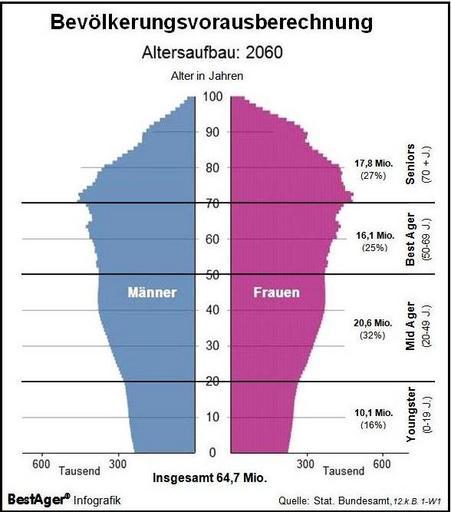 | Keywords: Altersaufbau 2060 Wikipedia.JPG graph de Bevölkerungsvorausberechnung des statistischen Bundesamtes für 2060 Statistisches Bundesamt Creator Statistisches Bundesamt 2009-11-24 editierte Grafik mit eigener Einteilung Population pyramids of Germany |