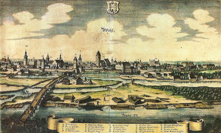 Keywords: Altes Stadtbild Wels.jpg Mittelalterliche Stadtansicht von Wels scanned from the book Kurt Holter Gilbert Trathnigg Hrsg Wels von der Urzeit bis zur Gegenwart 2 Auflage Welsermühl Wels 1985 1649 siehe http //www aeiou at/aeiou history gtour topo/docs/30041 htm AEIOU scanned 24 8 2006 Matthäus Merian scanned by de Montag Public Domain Urheber 1650 verstorben PD-old-100 History of Wels 17th-century engravings Engravings of Topographia Austriacarum Austria in art by Matthäus Merian Engravings of Upper Austria |