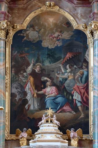 Keywords: Altorf StCyriaque080.JPG Alsace Bas-Rhin Altorf Abbatiale Saint-Cyriaque Maître-autel 1730 Tableau St-Cyriaque XVIIIe own 2015 Ralph Hammann cc-by-sa-4 0 Taken with Panasonic Lumix DMC-FZ1000 Photographs of Altorf by Ralph Hammann Artwork / Œuvre d'art / Kunstwerk Artist Saint Cyriaque exorcisant Arthémie la fille de l'empereur Dioclétien XVIIIe Restaurations du XIXe-XXe siècle oil canvas Abbatiale Saint-Cyriaque d'Altorf Maître-autel PM67000015 IM67015763 other versions Ralph Hammann PD-old accession number Maître-autel de l'église Saint-Cyriaque d'Altorf Objets monuments historiques in Bas-Rhin church paintings Baroque church paintings in Alsace 18th-century church paintings in Alsace Saint Cyriacus |
