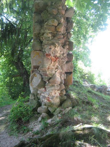 Keywords: Alūksne Castle eastern wall cross-section.jpg en Alūksne Castle cross-section of the Eastern wall One can clearly see that while both surfaces of the wall are evenly made of boulders the interior was built of rubble and boulders own Otoomet 2010-07-21 Alūksne Castle |