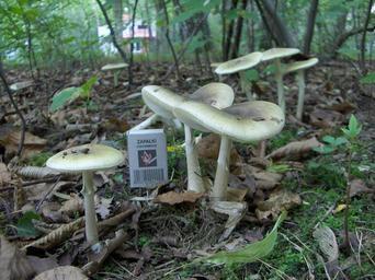 | Keywords: Amanita phalloides adult 3.jpg Death cap - two adult fungal fruiting bodies Location Europe Poland Mazovian Voivodship Podkowa Leśna broadleaf forest/garden See also other pictures of the same subject Muchomor sromotnikowy - dwa dorosłe owocniki Lokalizacja Europa Polska Województwo Mazowieckie Podkowa Leśna las liściasty/ogród Zobacz też inne zdjęcia tych samych okazów Own 2006-09-05 Stanisław Skowron all rights released Amanita phalloides | ||||