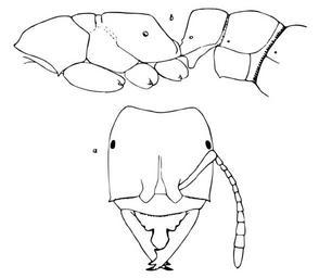 Keywords: Amblyopone.australis.cephalotes.worker.-.wheeler.svg Amblyopone australis ssp cephalotes Smith worker from New Zealand a head dorsal view; b thorax petiole and postpetiole in profile Wheeler 1927 Ants of the genus Amblyopone Erichson Proc Am Acad Arts Sci 62 1-29 http //research amnh org/entomology/social_insects/ants/publications/3386/3386 pdf PDF 1927 W M Wheeler pd-old PD-old Drawings of animals by William Morton Wheeler Drawings of ants |