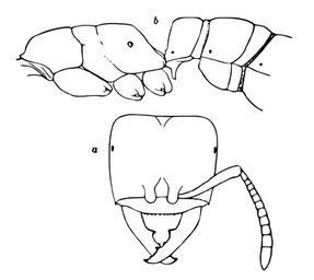 Keywords: Amblyopone.ferruginea.-.wheeler.svg Amblyopone ferruginea worker from New South Wales a head dorsal view; b thorax petiole and postpetiole in profile Wheeler 1927 Ants of the genus Amblyopone Erichson Proc Am Acad Arts Sci 62 1-29 http //research amnh org/entomology/social_insects/ants/publications/3386/3386 pdf PDF 1927 W M Wheeler pd-old PD-old Drawings of animals by William Morton Wheeler Drawings of ants |