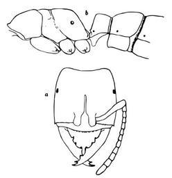 Keywords: Amblyopone.leae.-.wheeler.svg Amblyopone leae worker from Lord Howe Island a head dorsal view; b thorax petiole and postpetiole in profile Wheeler 1927 Ants of the genus Amblyopone Erichson Proc Am Acad Arts Sci 62 1-29 http //research amnh org/entomology/social_insects/ants/publications/3386/3386 pdf PDF 1927 W M Wheeler pd-old PD-old Drawings of animals by William Morton Wheeler Drawings of ants |
