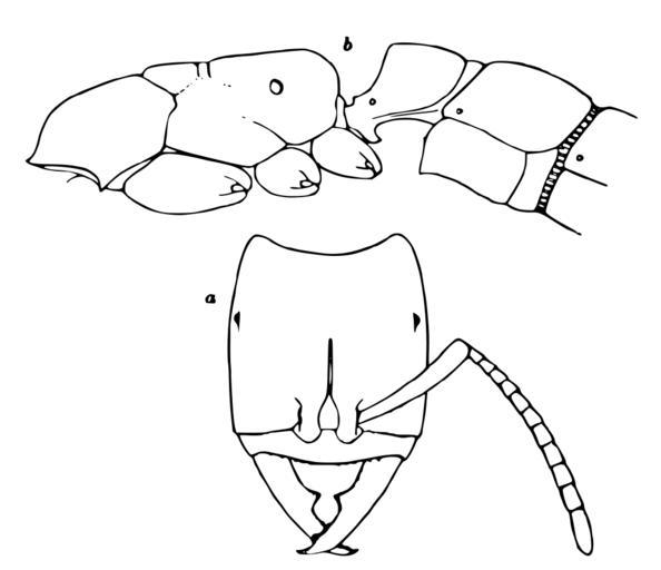 Keywords: Amblyopone.michaelseni.-.wheeler.svg Amblyopone michaelseni worker from West Australia a head dorsal view; b thorax petiole and postpetiole in profile Wheeler 1927 Ants of the genus Amblyopone Erichson Proc Am Acad Arts Sci 62 1-29 http //research amnh org/entomology/social_insects/ants/publications/3386/3386 pdf PDF 1927 W M Wheeler pd-old PD-old Drawings of animals by William Morton Wheeler Drawings of ants |