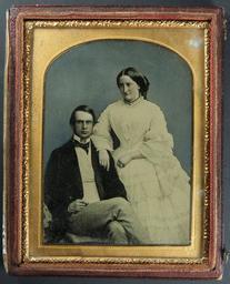 Keywords: ambrotype portrait groupshot people picture frame photo border Lovely 1/4-plate ambrotype, probably British, dating from around 1855-60. I suspect they may be newly-weds (or even about to be wed). Lovely 1/4-plate ambrotype, probably British, dating from around 1855-60. I suspect they may be newly-weds (or even about to be wed). |