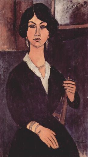Keywords: Amedeo Modigliani 054.jpg Artwork Q3612717 Creator Amedeo Modigliani 1916 oil canvas cm 92 54 private collection Basel accession number object history credit line modigliani signature lower right Yorck http //mail wikipedia org/pipermail/wikide-l/2005-April/012195 html PD-old-70 PD-Art-YorckProject Paintings of women by Amedeo Modigliani 1916 paintings Portrait paintings of sitting women Paintings with signatures Oil on canvas Female black hair in art Women with jewellery in art |