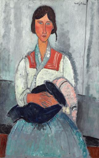 | Keywords: Amedeo Modigliani - Gypsy Woman with Baby (1919).jpg  Artwork Creator Amedeo Modigliani 1919 oil canvas cm 115 9 73 institution National Gallery of Art West Building Main Floor - Gallery 80 accession number 1963 10 174 object history credit line Chester Dale Collection exhibition history modigliani ~ upper right signature http //www nga gov/content/ngaweb/Collection/art-object-page 46649 html The National Gallery of Art Washington D C Q4024484 PD-old-auto-1923 1920 DEFAULTSORT Modigliani Amedeo; Gypsy Woman with Baby 1919; National Gallery of Art Paintings of women by Amedeo Modigliani Paintings by Amedeo Modigliani in the National Gallery of Art Washington Mother and child in art 1910s portrait paintings Roma people in art |