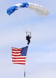 Keywords: american flag old glory flying in parachute parachuting patriotic stars and stripes stars and bars america celebrate fourth usa independence credit usaf staff sgt brian ferguson military red white blue