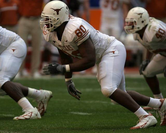 | Keywords: american football defensive end defender defense football sport team end field play competition player powerful muscular intimidating action motion male texas texan college football university champion active playing game activity grass outdoors green attacker |