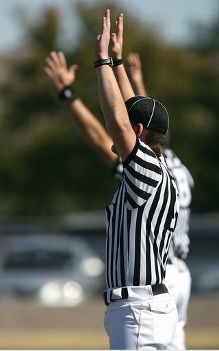 Keywords: american football football officials referees refs field goal score men uniform action football official sport game stripes signal striped sports officials