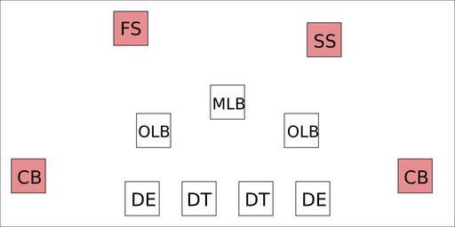 Keywords: American Football Position DB.svg en American Football position - DB アメリカンフット ールの ジション・ディフェンシヴバック Own Blowback 2008-08-07 American football formation diagrams SVG diagrams 4-3 defense