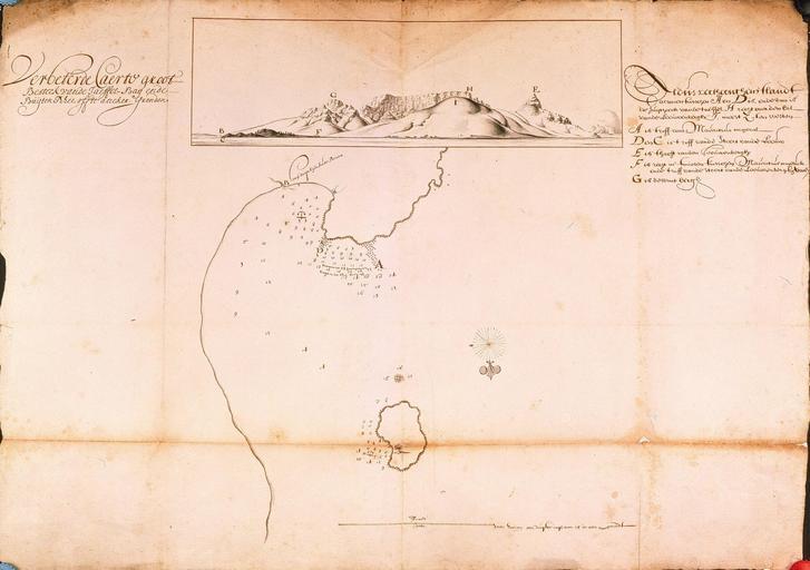 Keywords: AMH-2500-NA Map of Table Bay.jpg Artwork nl Kaart van de Tafelbaai nl Titel in catalogus Leupe NA Verbeterde Caerte groot besteck van de Taeffel-Bay en de buyten Rhee offte ancker gronden Legenda A-G Notities verso Inzet met gezicht op de Kaapse Bergen Topografische namen vermeld op deze kaart Tafelbaai Mauritius ongeval Staart van de Leeuwenberg Leeuwen-berg Windberg en According to the Leupe NA catalogue the original title reads Verbeterde Caerte groot besteck van de Taeffel-Bay en de buyten Rhee offte ancker gronden Key A-G Notes on reverse Inzet met gezicht op de Kaapse Bergen Topographical names mentioned Tafelbaai Mauritius ongeval Staart van de Leeuwenberg Leeuwen-berg Windberg Atlas of Mutual Heritage na http //www atlasofmutualheritage nl/en/object/ id 2500 Source at the Atlas of Mutual Heritage - http //www gahetna nl/collectie/archief/inventaris/index/eadid/4 VEL/inventarisnr/177/level/file Source at the Nationaal Archief en Subjects chart / map / plan survey / view anchorage / pier / harbour nl Onderwerpen plattegrond / kaart overzicht / aanzicht rede / haven / pier en Post this image is related to a VOC trading post called http //www atlasofmutualheritage nl/en/post/ id 320 Cape Town Inscription Verbeterde Caerte groot besteck van de Taeffel-Bay en de buyten Rhee offte ancker gronden nl circa 1661 Creator Pieter Potter nl Pieter Potter toegeschreven aan landmeter/kaartenmaker en Pieter Potter assigned to land surveyor / mapmaker Institution Nationaal Archief nl pen op papier en pen on paper Size mm 520 725 accession number NL-HaNA_4 VEL_177 old number VEL0177 PD-Art-100 Maps of the Dutch East India Company - South Africa 1661 |