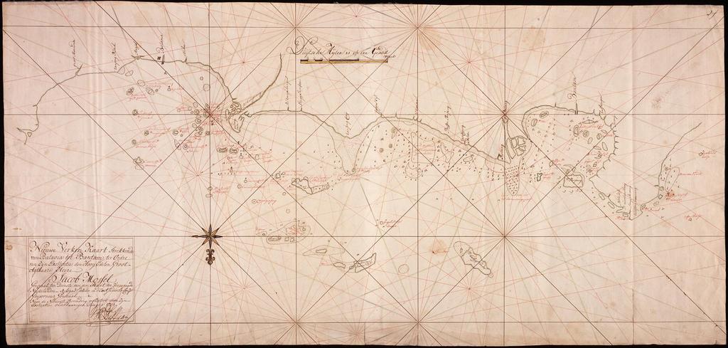 Keywords: AMH-5531-NA Map of the northern coast of Java.jpg Artwork nl Kaart van de noordkust van Java nl Titel catalogus Leupe NA Nieuwe Verken kaart strekkende van Batavia tot Bantam naar de nieuwste bevinding verbeterd Rechtsboven genummerd 2 f en Title in the Leupe catalogue NA Nieuwe Verken kaart strekkende van Batavia tot Bantam naar de nieuwste bevinding verbeterd Numbered top right 2 f Atlas of Mutual Heritage na http //www atlasofmutualheritage nl/en/object/ id 5531 Source at the Atlas of Mutual Heritage - http //www gahetna nl/collectie/archief/inventaris/index/eadid/4 VEL/inventarisnr/377/level/file Source at the Nationaal Archief en Subjects compass / dial chart / map / plan banderole / cartouche / ornamentation nl Onderwerpen kompas / windroos plattegrond / kaart banderol / cartouche / versiering en Post this image is related to a VOC trading post called http //www atlasofmutualheritage nl/en/post/ id 317 Banten Inscription Nieuwe Verken kaart strekkende van Batavia tot Bantam ter Ordre van zijn Exellentie den Hoog Edelen Groot Agtbaare Heere Jacob Mossel author G de Haan nl 1754 Creator G de Haan nl G de Haan landmeter / kaartenmaker en G de Haan land surveyor / mapmaker Institution Nationaal Archief nl pen op papier en pen on paper Size cm 49 102 5 accession number NL-HaNA_4 VEL_377 old number VEL0377 PD-Art-100 Maps of the Dutch East India Company - Indonesia 1754 |
