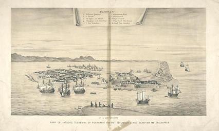 | Keywords: AMH-6417-NA View of Taiowan.jpg Artwork nl Gezicht op Taiowan nl Titel in catalogus Leupe Nationaal Archief Gezicht op Taiowan of Formosa Naar gelijktijdige teekening op perkament van het Zeeuws Genootschap van wetenschappen en Title in the Leupe Catalogue National Archives Gezicht op Taiowan of Formosa Naar gelijktijdige teekening op perkament van het Zeeuws Genootschap van wetenschappen Atlas of Mutual Heritage na http //www atlasofmutualheritage nl/en/object/ id 6417 Source at the Atlas of Mutual Heritage - http //www gahetna nl/collectie/archief/inventaris/index/eadid/4 VELH/inventarisnr/144/level/file Source at the Nationaal Archief en Subjects court / judicial court survey / view house government building / residence Person building bazaar / market anchorage / pier / harbour ship / vessel fortification nl Onderwerpen gerechtsgebouw / rechtsinstantie overzicht / aanzicht huis / woonhuis gouvernementshuis / -gebouw Persoon gebouw bazaar / markt rede / haven / pier schip / vaartuig vesting en Post this image is related to a VOC trading post called http //www atlasofmutualheritage nl/en/post/ id 761 An-Ping Inscription Taiowan / Naar gelijktijdige teekening op perkament van het Zeeuws Genootschap van wetenschappen nl between 1800 1810 nl Anoniem / Anonymous graveur / etser en Anoniem / Anonymous engraver / etcher Institution Nationaal Archief nl litho op papier en lithograph on paper Size cm 49 76 5 accession number NL-HaNA_4 VELH_144 old number VELH0144 PD-Art-100 Dutch East India Company 1800s art |