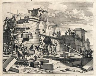 Keywords: AMH-6980-KB Portuguese prisoners of war build a fort near Candij.jpg Artwork nl Portugese krijgsgevangenen bouwen een fort bij Candij nl Portugese krijgsgevangenen bouwen een fort bij Candij De Ceilonese vorst Vimala Dharma Suriya had de Portugezen overwonnen bij een veldslag in 1592 en zette de gevangenen in om een fort te bouwen en Portuguese prisoners of war build a fort near Candij The Ceylonese ruler Vimala Dharma Suriya defeated the Portuguese in a battle in 1592 and deployed the prisoners to build a fort Atlas of Mutual Heritage kb http //www atlasofmutualheritage nl/en/object/ id 6980 Source at the Atlas of Mutual Heritage en Subjects fortification Person building European Asians Africans survey / view nl Onderwerpen vesting Persoon gebouw Europeanen Aziaten Afrikanen overzicht / aanzicht circa 1672 Creator Johannes Janssonius Waasbergen nl Anoniem / Anonymous graveur / etser Johannes Janssonius Waasbergen uitgever en Anoniem / Anonymous engraver / etcher Johannes Janssonius Waasbergen publisher Institution Koninklijke Bibliotheek nl koperdruk op papier en copperplate printing on paper Size cm 13 17 accession number 189 A 6 deel II p 15 PD-Art-100 Dutch East India Company 1672 |