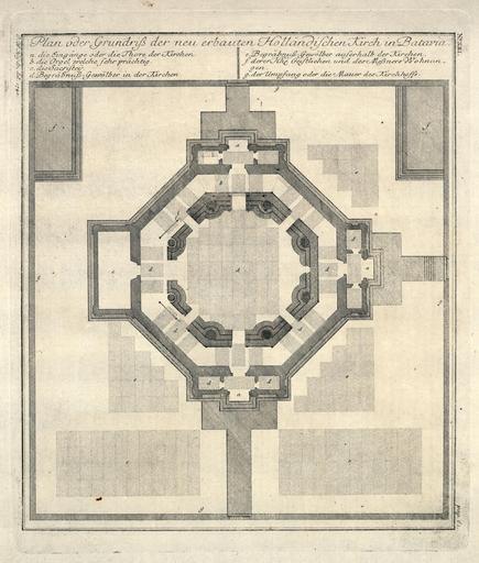 Keywords: AMH-7031-KB Map of the new Dutch church on Batavia.jpg Artwork nl Plattegrond van de nieuwe Hollandse kerk in Batavia nl Plattegrond van de nieuwe Hollandse kerk in Batavia Plan oder Grundriß der neu erbauten Holländischen Kirch in Batavia Rechtsboven N o XXI Rechtsonder pag 61 Legenda a die Eingänge oder die Thore der Kirchen / b die Orgel welche sehr prächtig / c die Sacristeij / d Begräbnuß-Gewölber in der Kirchen / e Begräbnuß-Gewölber auserhalb der Kirchen / f derer Hhe Geistlichen und des Meßners Wohnungen / g der Umpfang oder die Mauer des Kirchhoffs en Map of the new Dutch church on Batavia Plan oder Grundriß der neu erbauten Holländischen Kirch in Batavia Top right N o XXI Bottom right pag 61 Key a die Eingänge oder die Thore der Kirchen / b die Orgel welche sehr prächtig / c die Sacristeij / d Begräbnuß-Gewölber in der Kirchen / e Begräbnuß-Gewölber auserhalb der Kirchen / f derer Hhe Geistlichen und des Meßners Wohnungen / g der Umpfang oder die Mauer des Kirchhoffs Atlas of Mutual Heritage kb http //www atlasofmutualheritage nl/en/object/ id 7031 Source at the Atlas of Mutual Heritage en Subjects chart / map / plan key church / parsonage cemetery / graveyard house building nl Onderwerpen plattegrond / kaart legenda kerk / pastorie begraafplaats / kerkhof huis / woonhuis gebouw en Post this image is related to a VOC trading post called http //www atlasofmutualheritage nl/en/post/ id 328 Jakarta Inscription Plan oder Grundriß der neu erbauten Holländischen Kirch in Batavia author J W Heijdt del 1740 nl 1740 Creator Johann Wolfgang Heydt Creator Johann Carl Tetschner nl Johann Wolfgang Heydt tekenaar Anoniem / Anonymous graveur / etser Johann Carl Tetschner uitgever en Johann Wolfgang Heydt draughtsman Anoniem / Anonymous engraver / etcher Johann Carl Tetschner publisher Institution Koninklijke Bibliotheek nl koperdruk op papier en copperplate printing on paper Size cm 29 5 25 accession number 2102 A 7 p 61 PD-Art-100 Maps of the Dutch East India Company - Indonesia 1740 |