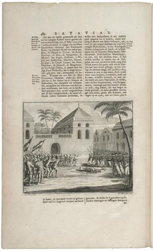Keywords: AMH-7253-KB The conquest of Jacatra by the VOC in 1619.jpg Artwork nl De verovering van Jacatra door de VOC in 1619 nl De verovering van Jacatra door de VOC in 1619 J P Coen besloot in 1619 dat Jakatra later Batavia een geschiktere basis voor de VOC op Java zou zijn dan Bantam en ging ertoe over deze stad in te nemen De sultan van Mataram onder wie Jakatra viel was het hier vanzelfsprekend niet mee eens en verzette zich hevig Hij vormde hierbij een alliantie met de in de stad aanwezige Engelsen en de sultan van Bantam Onderlinge onenigheid zorgde er echter voor dat Coen de stad toch voor de Nederlanders in wist te nemen Na de verovering werd de hele stad platgebrand opnieuw opgebouwd en omgedoopt tot Batavia De afbeelding is afkomstig uit het werk 'Oud en Nieuw Oost-Indiën' van François Valentyn en The conquest of Jacatra by the VOC in 1619 J P Coen decided in 1619 that Jakatra later Batavia would be a more suitable base for the VOC on Java than Bantam and travelled there to conquer the city The sultan of Mataram within whose influence Jakatra fell was obviously opposed and put up fierce resistance To further his cause he forged an alliance with the English present in the city and the sultan of Bantam However internal conflicts resulted in Coen being able to conquer the city for the Dutch anyway After the conquest the whole city was razed to the ground built anew and renamed Batavia The plate is taken from the work 'Oud en Nieuw Oost-Indien' by Francois Valentyn Atlas of Mutual Heritage kb http //www atlasofmutualheritage nl/en/object/ id 7253 Source at the Atlas of Mutual Heritage en Subjects battle / taking / war fight Person European Asians Africans survey / view building fortification nl Onderwerpen veldslag / oorlog strijd / inname Persoon Europeanen Aziaten Afrikanen overzicht / aanzicht gebouw vesting 1724 Creator Gerard onder de Linden Creator J van Braam Creator Otto Elliger Junior Creator Matijs Balen nl Gerard onder de Linden uitgever J van Braam uitgever Otto Elliger Junior graveur / etser Matijs Balen tekenaar en Gerard onder de Linden publisher J van Braam publisher Otto Elliger Junior engraver / etcher Matijs Balen draughtsman Institution Koninklijke Bibliotheek nl gravure op papier en engraving on paper Size cm 15 18 accession number 185 A 5 deel IV I p 482 PD-Art-100 Dutch East India Company 1724 Batavia |