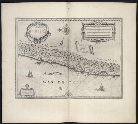 Keywords: AMH-7511-KB Map of Chile.jpg Artwork nl Kaart van Chili nl Kaart van Chili Chili Legenda 1 Pta de Talcaguana / 2 I Quiriquina / 3 R Biobio / 4 R Llandalien / 5 R de la Laxa Cf Koninklijke Bibliotheek Den Haag inv nr 1049B13_089 Idem inv nr 40 E 6 na p 410; en Idem inv nr 36 G 19 na p 424 en Map of Chile Chili Key 1 Pta de Talcaguana / 2 I Quiriquina / 3 R Biobio / 4 R Llandalien / 5 R de la Laxa Cf Koninklijke Bibliotheek The Hague inv nr 1049B13_089 Idem inv nr 40 E 6 after p 410; and Idem inv nr 36 G 19 after p 424 Atlas of Mutual Heritage kb http //www atlasofmutualheritage nl/en/object/ id 7511 Source at the Atlas of Mutual Heritage en Subjects key chart / map / plan banderole / cartouche / ornamentation fauna compass / dial ship / vessel nl Onderwerpen legenda plattegrond / kaart banderol / cartouche / versiering fauna kompas / windroos schip / vaartuig en Post this image is related to a WIC trading post called http //www atlasofmutualheritage nl/en/post/ id 1056 Castro Inscription Chili author Amstelodami Guiljelmus Blaeuw excudit nl 1647 Creator Wilhelm Jansz Blaeu Creator Joan Blaeu sr nl Wilhelm Jansz Blaeu uitgever Joan Blaeu sr uitgever Anoniem / Anonymous landmeter / kaartenmaker en Wilhelm Jansz Blaeu publisher Joan Blaeu sr publisher Anoniem / Anonymous land surveyor / mapmaker Institution Koninklijke Bibliotheek nl koperdruk op papier en copperplate printing on paper Size cm 45 5 51 accession number 1043 B 14 na p 262 PD-Art-100 Maps of the West-Indische Compagnie 1647 |