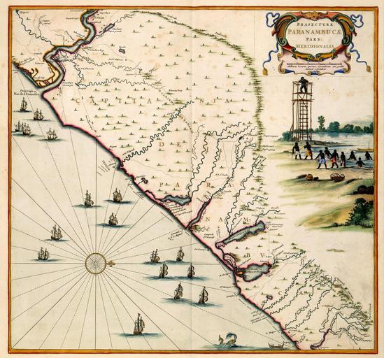 | Keywords: AMH-7744-KB Map of Pernambuco.jpg Artwork nl Kaart van Pernambuco nl Kaart van Pernambuco Praefecturae Paranambucae pars Meridionalis Tussen 1630 en 1654 werd een groot deel van Brazilië door de Nederlanders bezet Gedurende deze periode werd het gebied in kaart gebracht door de kartografen Cornelis Goliath overleden 1667/1668 en Georg Marcgraf In 1643 verwerken zij de resultaten van deze opname in een fraaie wandkaart Naar het voorbeeld van die kaart publiceerde Joan Blaeu 1598-1673 in 1662 deze atlaskaart Voor de kust is een groot aantal Oost-Indiëvaarders afgebeeld Deze kaart is te verbinden aan de kaarten Koninklijke Bibliotheek Den Haag inv nr 1049B13_094; Idem inv nr 1049B13_095; Idem inv nr 1049B13_097 Eerder werd de kaart gepubliceerd in C Barlaeus Rerum per octennium in Brasilia Amsterdam 1647 Cf Koninklijke Bibliotheek Den Haag inv nr 1043 B 14 na p 38 1 en Nationaal Archief Den Haag inv nr VEL0695 en Map of Pernambuco Praefecturae Paranambucae pars Meridionalis Between 1630 and 1654 large parts of Brazil were occupied by the Dutch During this period the area was mapped by the cartographers Cornelis Goliath died in 1667/1668 and Georg Marcgraf In 1643 they rendered the results of these mapping activities in an attractive wall chart Joan Blaeu 1598-1673 published this atlas chart based on their map in 1662 A large number of East Indiamen is depicted off the coast This map may be linked to the charts Koninklijke Bibliotheek The Hague inv nr 1049B13_094; Ibid inv nr 1049B13_095; Ibid inv nr 1049B13_097 The chart was previously published in C Barlaeus Rerum per octennium in Brasilia Amsterdam 1647 Cf Koninklijke Bibliotheek The Hague inv nr 1043 B 14 after p 38 1 and Nationaal Archief The Hague inv nr VEL0695 Atlas of Mutual Heritage kb http //www atlasofmutualheritage nl/en/object/ id 7744 Source at the Atlas of Mutual Heritage en Subjects tower chart / map / plan ship / vessel Person building chart / map / plan compass / dial survey / view North and South Americans fauna nl Onderwerpen toren plattegrond / kaart schip / vaartuig Persoon gebouw plattegrond / kaart kompas / windroos overzicht / aanzicht Noord- en Zuid-Amerikanen fauna en Post this image is related to a WIC trading post called http //www atlasofmutualheritage nl/en/post/ id 1047 Santa Luzia do Norte Inscription Praefecturae Paranambucae pars Meridionalis nl 1662 Creator Frans Post Creator Georg Marcgraf Creator Cornelis Goliath Creator Joan Blaeu sr nl Frans Post gewerkt naar Georg Marcgraf landmeter / kaartenmaker Cornelis Goliath landmeter / kaartenmaker Joan Blaeu sr uitgever en Frans Post copied after Georg Marcgraf land surveyor / mapmaker Cornelis Goliath land surveyor / mapmaker Joan Blaeu sr publisher Institution Koninklijke Bibliotheek nl ingekleurde gravure op papier en coloured engraving on paper Size cm 43 46 accession number 1049B13_096 PD-Art-100 Maps of the West-Indische Compagnie 1662 |