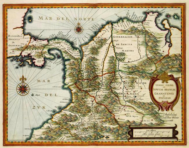 Keywords: AMH-7752-KB Map of the northwest coast of South America and the southern part of Central America.jpg Artwork nl Kaart van de Noordwest-kust van Zuid-Amerika en het zuidelijk deel van Midden-Amerika nl Kaart van de Noordwest-kust van Zuid-Amerika en het zuidelijk deel van Midden-Amerika Terra Firma et Novum Regnum Granatense et Popayan Behalve in Azië waren de Nederlanders ook actief in Noord- Midden en Zuid-Amerika De handelsactiviteiten werden daar gecoördineerd door de in 1621 opgerichte West-Indische Compagnie Dat de compagnie er vrij spoedig in slaagde om deze uitgestrekte gebieden te bestrijken was vooral te danken aan het goede kaartmateriaal waarover men beschikte Veel van dat materiaal werd beheerd door Willem Jansz Blaeu 1571-1638 die behalve uitgever ook de officiële kaartenmaker van de Oost-Indische Compagnie was Vanzelfsprekend mocht Blaeu dit uiterst delicate kaartmateriaal niet door middel van zijn atlassen aan het grote publiek prijsgeven en moest hij voor het samenstellen van zijn kaarten gebruik maken van andere materialen Voor deze kaart van Columbia en de landengte Panama greep Blaeu terug op de 'Beschrijvinghe van West-Indien' een fameus boek van Johannes de Laet 1583-1649 uit 1625 De kaart kwam ook terug in de 'Atlas Maior' uit 1665 Blaeu wijzigde de kaart enigszins Cf Koninklijke Bibliotheek Den Haag inv nr 36 G 19 na p 300; en Idem inv nr 40 E 6 na p 266 en Map of the northwest coast of South America and the southern part of Central America Terra Firma et Novum Regnum Granatense et Popayan In addition to Asia the Dutch also maintained an active presence in North Central and South America The trading activities there were coordinated by the West India Company or West-Indische Compagnie which was founded in 1621 That the company was able to cover these extensive areas within a fairly short period was due in no small measure to the superior quality of the maps they had at their disposal Much of this material was managed by Willem Jansz Blaeu 1571-1638 who was not only a publisher but also the official mapmaker of the Dutch East India Company Naturally Blaeu was not permitted to reveal this extremely sensitive geographical data to the public at large and so he was forced to make use of other materials in order to compile his maps For this map of Columbia and the Panama peninsula Blaeu made use of the 'Beschrijvinghe van West-Indien' a famous book by Johannes de Laet 1583-1649 dating from 1625 The map is also featured in the 'Atlas Maior' of 1665 Blaeu amended the map to some extent -Cf Koninklijke Bibliotheek The Hague inv nr 36 G 19 after p 300; and Ibid inv nr 40 E 6 after p 266 Atlas of Mutual Heritage kb http //www atlasofmutualheritage nl/en/object/ id 7752 Source at the Atlas of Mutual Heritage en Subjects chart / map / plan banderole / cartouche / ornamentation compass / dial nl Onderwerpen plattegrond / kaart banderol / cartouche / versiering kompas / windroos en Post this image is related to a WIC trading post called http //www atlasofmutualheritage nl/en/post/ id 1364 Aruba Inscription Terra Firma et Novum Regnum Granatense et Popayan author Amstelodami Guiljelmus Blaeuw excudit nl 1630 Creator Wilhelm Jansz Blaeu nl Anoniem / Anonymous landmeter / kaartenmaker Wilhelm Jansz Blaeu uitgever en Anoniem / Anonymous land surveyor / mapmaker Wilhelm Jansz Blaeu publisher Institution Koninklijke Bibliotheek nl ingekleurde gravure op papier en coloured engraving on paper Size cm 37 48 accession number 1049B13_087 PD-Art-100 Maps of the West-Indische Compagnie 1630 |