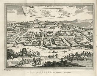 | Keywords: AMH-7954-KB Bird's eye view of Loango.jpg Artwork nl Vogelvlucht van Loango nl Vogelvlucht van Loango De Stad van Loango uit Dapper getrokken Cité de Loango Tirée de Dapper Legenda A-L De prent is overgenomen uit Olfert Dapper 'Naukeurige Beschrijvingen der Afrikaensche gewesten' Koninklijke Bibliotheek Den Haag inv nr 185 B 11 deel I na p 518 Cf Koninklijke Bibliotheek Den Haag inv nr 3032 B 12 na p 215 en Bird's eye view of Loango De Stad van Loango uit Dapper getrokken Cité de Loango Tirée de Dapper Key A-L The print has been taken from Olfert Dapper 'Naukeurige Beschrijvingen der Afrikaensche gewesten' Koninklijke Bibliotheek The Hague inv nr 185 B 11 part 1 after p 518 Cf Koninklijke Bibliotheek The Hague inv nr 3032 B 12 after p 215 Atlas of Mutual Heritage kb http //www atlasofmutualheritage nl/en/object/ id 7954 Source at the Atlas of Mutual Heritage en Subjects bird's-eye view / elevation elevation / bird's-eye view chart / map / plan key banderole / cartouche / ornamentation fence / kraal Person Asians Africans palace garden / ornamental garden house tower nl Onderwerpen vogelvlucht / opstand opstand / vogelvlucht plattegrond / kaart legenda banderol / cartouche / versiering omheining / kraal Persoon Aziaten Afrikanen paleis tuin / siertuin huis / woonhuis toren en Post this image is related to a WIC trading post called http //www atlasofmutualheritage nl/en/post/ id 938 Loango Inscription De Stad van Loango author J v Schley direx nl 1747 Creator Jacobus van der Schley Creator Pierre d' Hondt nl Jacobus van der Schley direxit Anoniem / Anonymous gewerkt naar Pierre d' Hondt uitgever en Jacobus van der Schley direxit Anoniem / Anonymous copied after Pierre d' Hondt publisher Institution Koninklijke Bibliotheek nl gravure op papier en engraving on paper Size cm 17 22 accession number 639 C 6 dl VI na p 239 PD-Art-100 Maps of the West-Indische Compagnie 1747 |