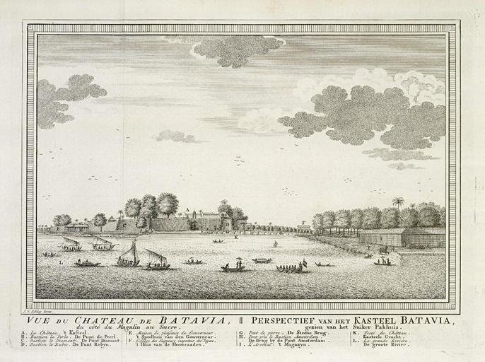 Keywords: AMH-7977-KB View of Batavia Castle from the sugar warehouse.jpg Artwork nl Gezicht op het kasteel Batavia vanaf het suikerpakhuis nl Gezicht op het kasteel Batavia vanaf het suikerpakhuis Perspectief van het Kasteel Batavia gezien van het Suiker Pakhuis Vue du Chateu de Batavia du côté du Magasin au Sucre Legenda A-L Cf Rijksmuseum Amsterdam inv nrs NG-1972-27-F RP-P-OB-47-398 en KOG-45a en Museum Bronbeek Arnhem inv nr B96 en View of Batavia Castle from the sugar warehouse Perspectief van het Kasteel Batavia gezien van het Suiker Pakhuis Vue du Chateu de Batavia du côté du Magasin au Sucre Key A-L Cf Rijksmuseum Amsterdam inv nrs NG-1972-27-F RP-P-OB-47-398 and KOG-45a and Museum Bronbeek Arnhem inv nr B96 Atlas of Mutual Heritage kb http //www atlasofmutualheritage nl/en/object/ id 7977 Source at the Atlas of Mutual Heritage en Subjects survey / view fortification anchorage / pier / harbour key ship / vessel Person European Asians Africans building bridge nl Onderwerpen overzicht / aanzicht vesting rede / haven / pier legenda schip / vaartuig Persoon Europeanen Aziaten Afrikanen gebouw brug en Fort this image is related to a VOC fort called http //www atlasofmutualheritage nl/en/fort/ id 16 kasteel Batavia Inscription Perspectief van het Kasteel Batavia gezien van het Suiker Pakhuis author J v Schley direx nl 1753 Creator Jacobus van der Schley nl Jacobus van der Schley direxit en Jacobus van der Schley direxit Institution Koninklijke Bibliotheek nl gravure op papier en engraving on paper Size cm 16 21 5 accession number 693 C 6 dl X na p 570 PD-Art-100 Dutch East India Company 1753 Batavia Castle |