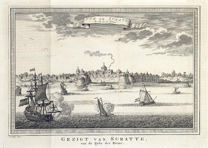 | Keywords: AMH-8002-KB View of Surat.jpg Artwork nl Gezicht op Surat nl Gezicht op Surat Vue de Surate du côté de la Riviere Gezigt van Suratte van de Zyde der Rivier Bij het fort zijn kanonnen zichtbaar op de verschansing Vingboons beeldt dezelfde locatie af echter op zijn aquarel is de stad niet Suratte maar Visiapour te zien vergelijk Nationaal Archief inv nr VELH0619 105 Cf Koninklijke Bibliotheek inv nr 227K3 deel VII na p 104 Koninklijke Bibliotheek inv nr 388A4 deel I na p 28 en Rijksmuseum inv nr RP-P-1907-2820 en View of Surat Vue de Surate du côté de la Riviere Gezigt van Suratte van de Zyde der Rivier Cannons can be seen on the parapet alongside the fort Vingboons depicts the same location but in his watercolour it is not the city of Surat but that of Visiapour compare National Archives inv nr VELH0619 105 Cf Koninklijke Bibliotheek inv nr 227K3 part VII after p 104 Koninklijke Bibliotheek inv nr 388A4 part I after p 28 and Rijksmuseum inv nr RP-P-1907-2820 Atlas of Mutual Heritage kb http //www atlasofmutualheritage nl/en/object/ id 8002 Source at the Atlas of Mutual Heritage en Subjects survey / view church / parsonage banderole / cartouche / ornamentation ship / vessel building fortification house nl Onderwerpen overzicht / aanzicht kerk / pastorie banderol / cartouche / versiering schip / vaartuig gebouw vesting huis / woonhuis en Post this image is related to a VOC trading post called http //www atlasofmutualheritage nl/en/post/ id 341 Surat Inscription Vue de Surate du côté de la Riviere / Gezigt van Suratte van de Zyde der Rivier author J v Schley direx nl circa 1753 Creator Jacobus van der Schley Creator Pierre d' Hondt nl Jacobus van der Schley direxit Pierre d' Hondt uitgever en Jacobus van der Schley direxit Pierre d' Hondt publisher Institution Koninklijke Bibliotheek nl gravure op papier en engraving on paper Size cm 17 5 26 accession number 693 C 6 dl XI to p 289 PD-Art-100 Dutch East India Company 1753 |