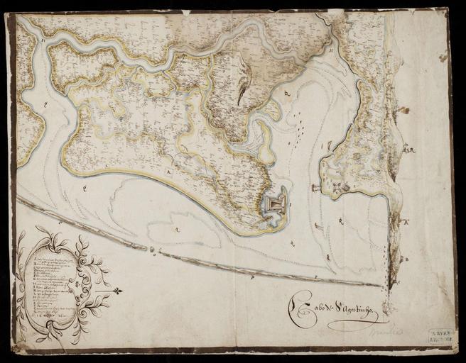 Keywords: AMH-8585-NA Map of Cabo S. Augustine.jpg Artwork nl Kaart van Cabo S Augustijn nl Kaart van Cabo S Augustijn Titel in Catalogus Leupe NA Kaartje van het Puntaal enz Binnen Kaap St Augustyn na de verovering in 1634 Cabo de St Agostinho Legenda A-R Rechtsonder een stempel met S Ryks Archief Rechtsonder in potlood Braziliƫ Cf Nationaal Archief Den Haag inv nr VEL0714 en VELH0619 92 Cf Koninklijke Bibliotheek Den Haag inv nr 1043 B 14 na p 136 no 36 en Map of Cabo S Augustine Title in the Leupe Catalogue NA Kaartje van het Puntaal enz Binnen Kaap St Augustyn na de verovering in 1634 Cabo de St Agostinho Key A-R Bottom right a stamp bearing the legend S Ryks Archief Bottom right in pencil Braziliƫ Cf National Archive The Hague inv nr VEL0714 and VELH0619 92 Cf Koninklijke Bibliotheek The Hague inv nr 1043 B 14 after p 136 no 36 Atlas of Mutual Heritage na http //www atlasofmutualheritage nl/en/object/ id 8585 Source at the Atlas of Mutual Heritage - http //www gahetna nl/collectie/archief/inventaris/index/eadid/4 VEL/inventarisnr/715/level/file Source at the Nationaal Archief en Subjects chart / map / plan banderole / cartouche / ornamentation key ship / vessel compass / dial building fortification church / parsonage house Person nl Onderwerpen plattegrond / kaart banderol / cartouche / versiering legenda schip / vaartuig kompas / windroos gebouw vesting kerk / pastorie huis / woonhuis Persoon Inscription Cabo de St Agostinho nl 1636 Creator Theunis nl Anoniem / Anonymous landmeter / kaartenmaker Theunis gewerkt naar en Anoniem / Anonymous land surveyor / mapmaker Theunis copied after Institution Nationaal Archief nl pen en penseel op papier en pen and brush on paper Size cm 33 42 accession number NL-HaNA_4 VEL_715 old number VEL0715 PD-Art-100 Maps of the West-Indische Compagnie 1636 |
